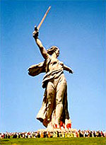 | The Mother of Russia Statue as seen during the Victory Day celebrations on May 9th. |